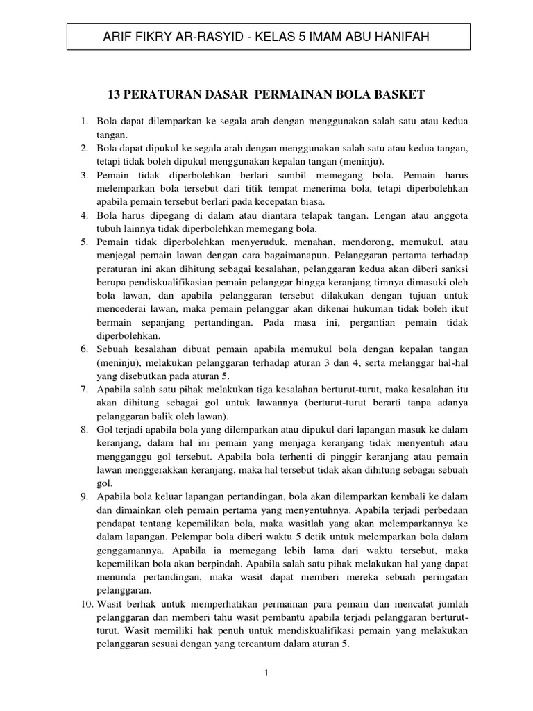 Peraturan Bola Basket Lengkap Padat Dan Jelas Pakar Dokumen
